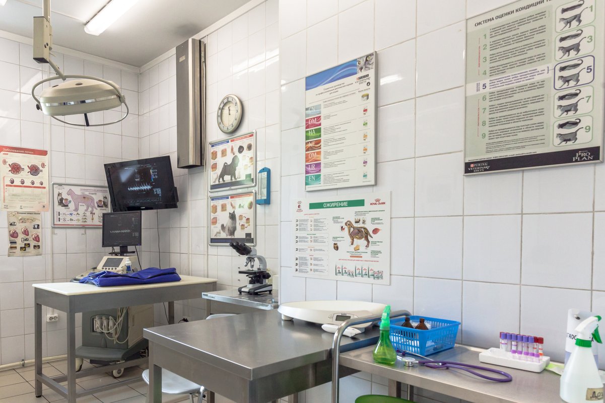 В числе наших услуг анализ крови, анализы на панлейкопению, пироплазмоз, токсоплазмоз, УЗИ, ЭКГ, рентген, анестезия, вакцинация кошек, собак и кроликов, прививка против бешенства, взвешивание животных, дегельминтизация кошек и собак, кастрация, проведение операции кесарево сечение, купирование ушей и хвоста, обработка от блох, прием родов у животных, стерилизация, удаление зубного камня, удаление зубов, извлечение клещей, удаление параанальных желез, уколы, чистка зубов, чипирование кошек и собак, услуги груминга (в т.ч. маникюр, мытье, окрашивание шерсти, подстригание когтей, стрижка и чистка ушей), передержка кошек и собак, эвтаназия и кремация животных, приём ветеринарного дерматолога, кардиолога, ортопеда, офтальмолога, стоматолога, терапевта, хирурга, гинеколога и диагноста, оформление ветпаспорта, диспансеризация животных, стационар для животных, лечение грызунов, морских свинок и экзотических животных.